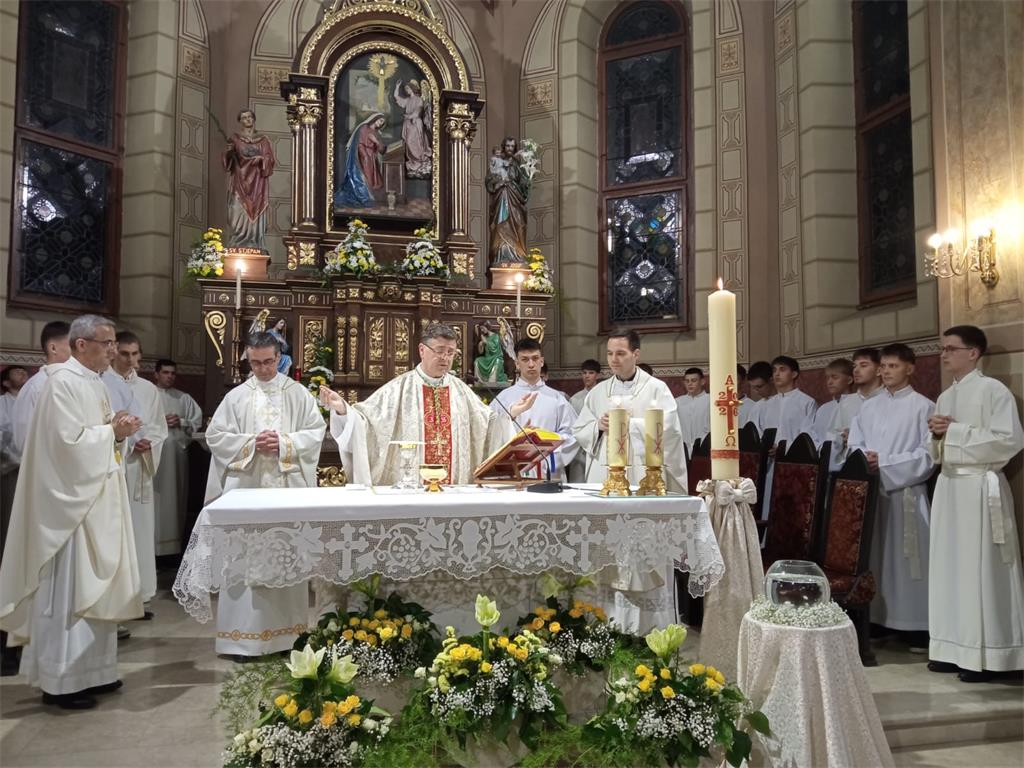 Večeras započinje prvi dan, sasvim nova stvarnost; novi dan koji ne može zastarjeti; dan iznenađujuće snage i divljenja, rekao je biskup Šaško naglasivši kako ova noć pokreće novi tjedan, novo razdoblje, novi svijet. "Mi započinjemo s Bogom; On nam daje život; i samo uz njegov blagoslov želimo započeti svoja razmišljanja, svoj govor i svoje odnose s drugima i svoj rad. Zato su naši stari sva svoja djela, susrete, blagovanja započinjali znakom križa, ne srameći se započinjati i završavati s Bogom. I to su nam prenijeli, predali kao snagu i smjerokaz. Kada su se susretali, spominjali su Isusovo i Marijino ime; u pozdravu: Hvaljen Isus i Marija nalazi se skraćeni hvalospjev. I kada su se opraštali izgovarali su 'zbogom', u kojemu je sadržana molitva da ljudi trajno budu s Božjom prisutnošću. Ovo večerašnje slavlje polazište je za naše prenošenje dragocjenoga blaga života jednih drugima, osobito djeci. I ohrabrenje da se ne ustručavamo pokazati tko je za nas Početak i Završetak, kako je ispisano na uskrsnoj svijeći; što je naša čežnja i naša radost tijekom svih dana u godini, pod znakom proslavljenoga križa i Kristova svjetla. Kamen je otkotrljan, anđeo sjedi na njemu: materijalni svijet nije više mjerodavan. Više nije važno što imamo, što posjedujemo ili koliko vrijedimo za prolazni svijet; važno je samo tko smo i komu živimo. Ova je večer ljepota posljednjih koji postaju prvi; najmanjih koji su najveći; uskrsna Radosna vijest objavljuje da su ljudi koji se ne nameću i koji su prezreni Božja voljena i blagoslovljena djeca. Nedjelja koja izrasta iz Kristova vazma otvorenost je budućnosti. Svanut će jutro, započeti novi dan i novi tjedan, ali i novi život. Njega slavimo, kao Božji dar. Prepoznajmo to nakon ove noći, dok molimo da nas zahvati ljepota Uskrsa, jer iznova je otvoren novi svijet; nebo je među nama i u nama!", zaključio je homiliju biskup Šaško.