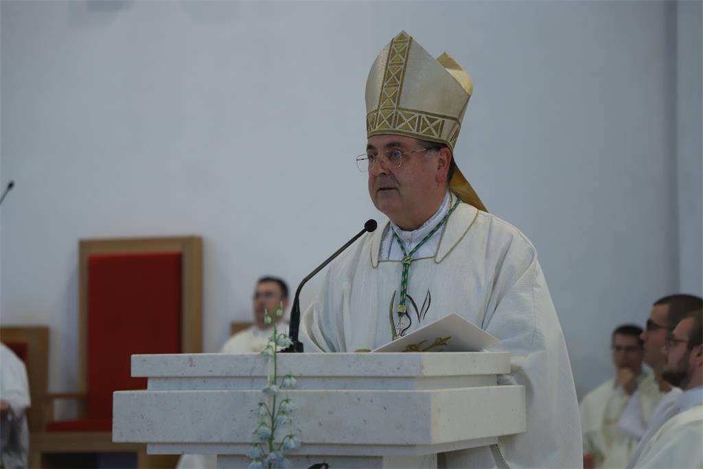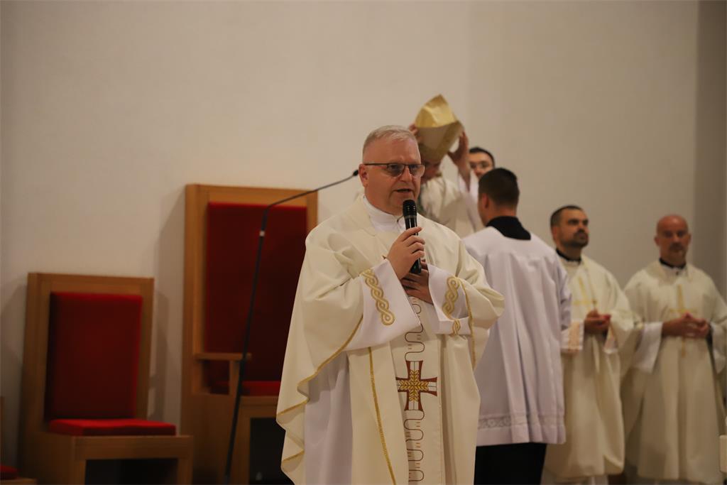 Na početku euharistijskog slavlja biskup Šaško pozdravio je sve prisutne župljane, a osobito bogoslove koji će biti primljeni među kandidate za svete redove đakonata i prezbiterata. Istaknuo je da je "svetkovina po kojoj otajstvo spasenja živimo u svjetlu svetosti Ivana Krstitelja pomaže nam povezati: prošlost i sadašnjost, zahvalnost i očekivanja, nesigurnost i pouzdanje, naše planove i putove koji su poznati samo Bogu i onima koji nas vole. Zbog toga je večeras znakovita i posebno lijepa vaša prisutnost, dragi roditelji, dragi članovi obitelji ovih bogoslova-pripravnika". Nadodao je da se u molitvi nalazi i "cjelovitost života: začeće i dolazak na svijet, obitelj, Crkva i društvo, prepoznavanja i dvojbe, oduševljenja i brige, te ono što nadilazi prolaznost i daje vječni smisao svakoj žrtvi i daru" te pozvao pripravnike da ne zaborave početni titraj u kojemu su prepoznali Gospodinov poziv idu putem svećeništva: "ne zaboravite privlačnost i čežnju, čistoću u kojoj ste Bogu odgovorili srcem, da biste danas mogli riječima to potvrditi pred nama tako jednostavno, s tri odgovora.