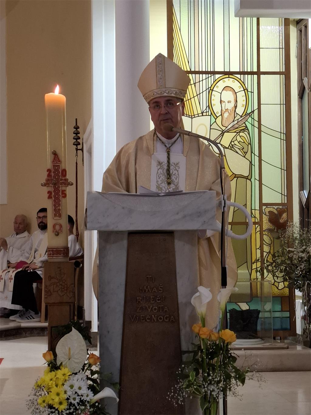 Gdje ti je brat?", dodao je mons. Šaško te zaključio: "Braćo i sestre, sva povijest svijeta stane u komadić kruha koji Bog svojim Duhom preobražava u Kristovo tijelo. Taj komadić za svijet izgleda nedostatnim. Ali teška povijest našega naroda uči nas da je snagom toga Kruha preživjela ljubav, da je građena blizina, da su ljudi pronašli snagu za koju su mislili da ju nemaju; uči nas da je preživio i sam narod, posebice onda kada je proganjana vjera i kada su ubijani mnogi, pa tako i proroci, kakav je bio blaženi Alojzije Stepinac. Toliko nam se puta u životu čini da ne možemo dalje, da nema smisla; da će nas nemoć i glad, kako materijalna tako i duhovna, svladati i uništiti. Ali nas ne uništava oskudica, nego pomanjkanje ljubavi, dobra i istine."