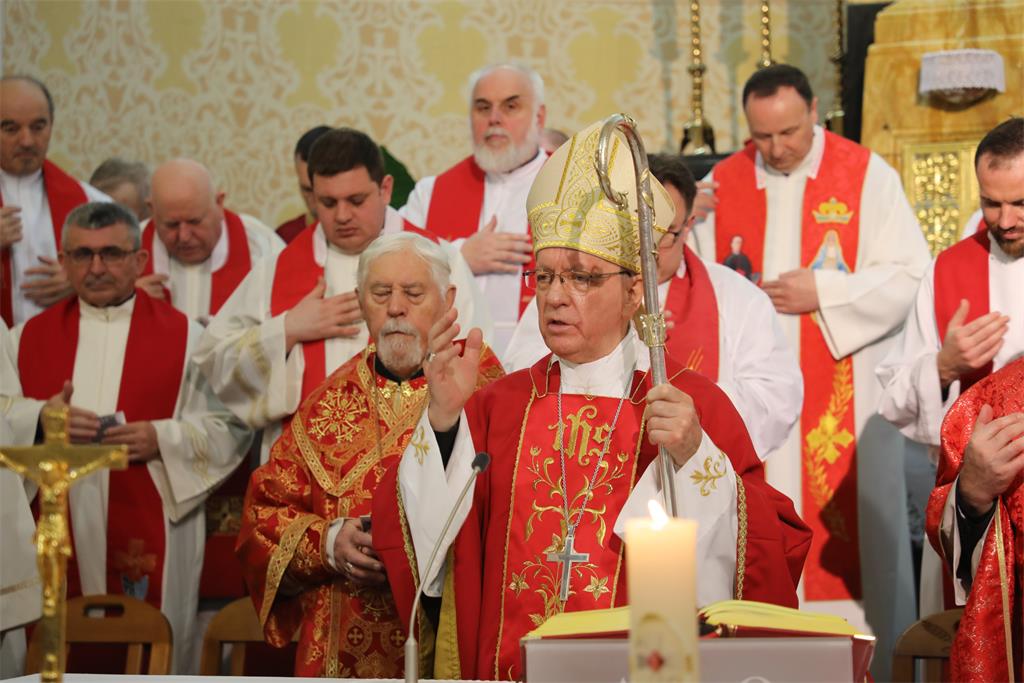 U uvodu u euharistijsko slavlje biskup Škvorčević podsjetio je "da smo ovdje u crkvi u kojoj je tijekom više godina naš blaženi Alojzije uzdizao svoju dušu u Bogu i prepoznavao svoje patnje i trpljenje kao Božji dar. Njegovo trpljenje bilo je veliki ulog za naše dobro."