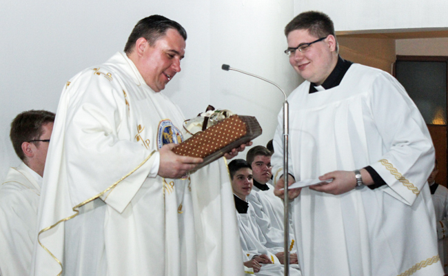 Hvala i Vašim suradnicima, koji Vaše misli i ideje uprostoruju, pretaču u djela iz kojih osjećamo pravu pobožnost, onu Josipovsku, jer prava pobožnost vodi k radu, k radosnom iznošenju – čak i kad je to teško i kad nemamo razumijevanja od okoline – svakodnevnih obveza u kojima struji Kristov životni sok koji daje život našoj duši.“ Rektor Sjemeništa propovijed je završio znakovitom usporedbom simbolike uskrsne svijeće s novoblagoslovljenim vratima.