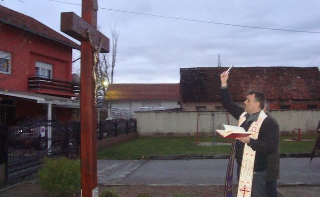 Prilikom blagoslova vlč. Horvat istaknuo je povezanost križa, odnosno raspela s današnjom svetkovinom Krista Kralja, kada slaveći Krista kao Kralja svega stvorenja križ ne shvaćamo kao znak poraza već kao znak pobjede, budući da je Krist ustoličen kao kralj upravo na križu.