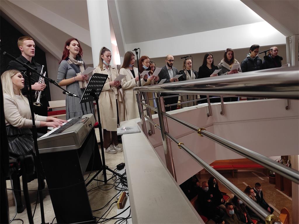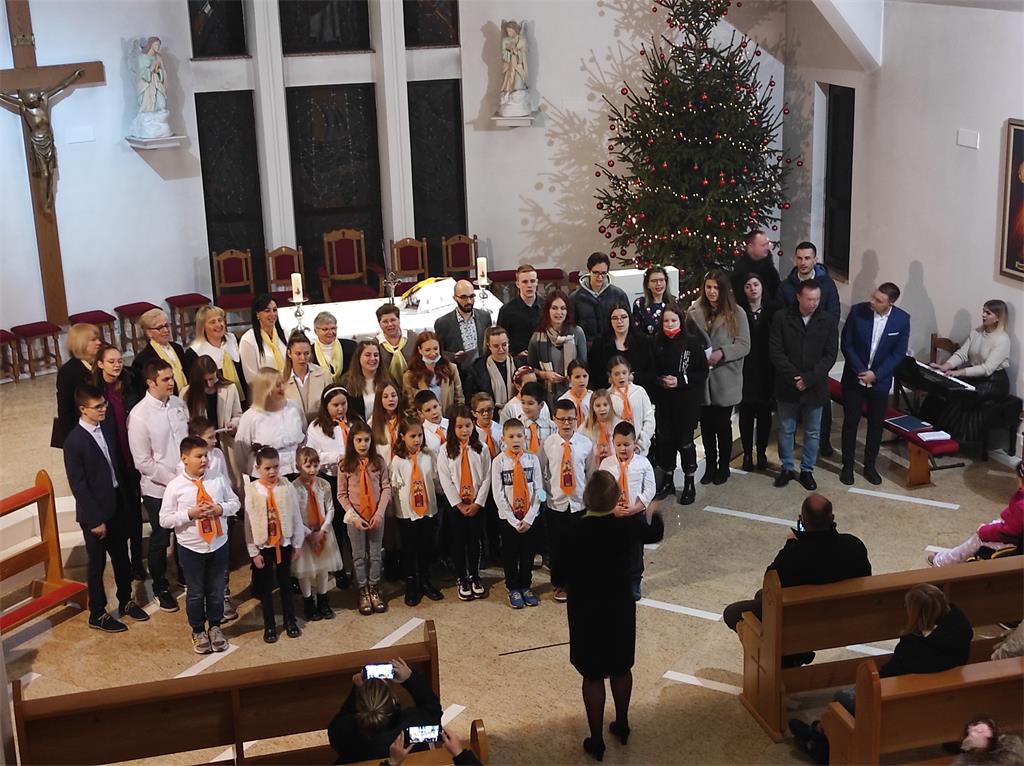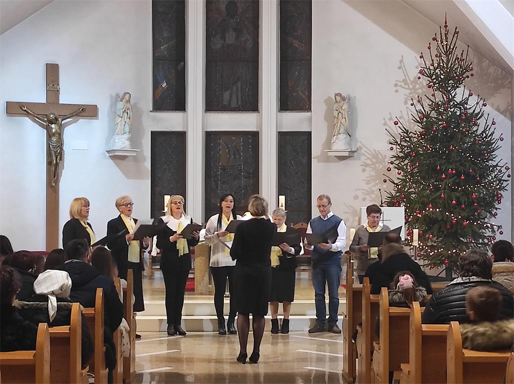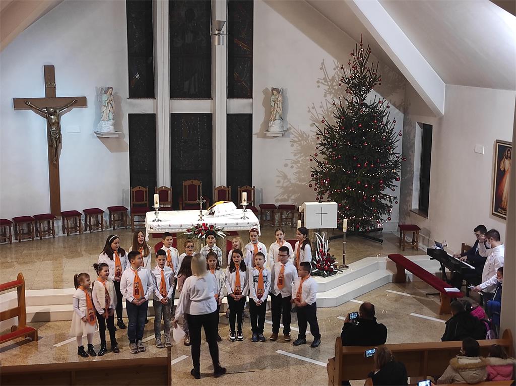 U župnoj crkvi okupili su se mnogi župljani da radosno uživaju u pjesmama koje su pripremili voditelji zborova. Veliki župni zbor, na čelu s voditeljicom Barbarom Dodić, sve nazočne počastio je pjesmama Zdrav Kralj mladi, U noći zvjezdanoj i Djetešce maleno. Potom je nastupio najmlađi zbor župe, Dječji zbor s voditeljima Ivanom Vlahović i Lovrom Mihelićem pjesmama Djetešce nam se rodilo, Maleni Isus i Zvončići. Oba zbora na klavijaturama je pratio Gabriel Kobečćak, a na pjesmi Zvončići s trubom mu se pridružio Ivan Dodić. Mnogobrojni zbor mladih Glasnik Velikoga Kralja, pod vodstvom Lucije Vitko, predstavio se pjesmama Tiha noć, Rodila se ljubav i Čekam te. Na kraju koncerta svi zajedno otpjevali su pjesmu Narodi nam se.