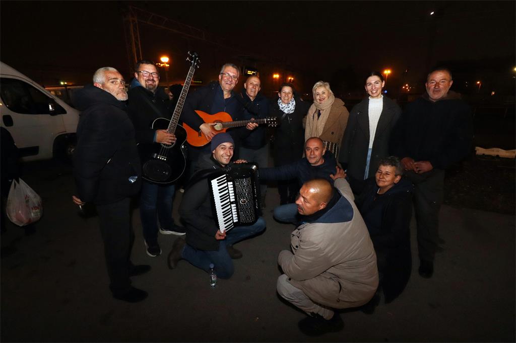 Posebno iznenađenje, koje je uz topli obrok, tople napitke i podjelu tople odjeće, ispunilo ovu hladnu i maglovitu kolodvorsku večer bio je nastup Klape "Imota", čiji je član Branimir Gudelj ujedno i voditelj Tehničke službe i Skladišta Caritasa Zagrebačke nadbiskupije.
