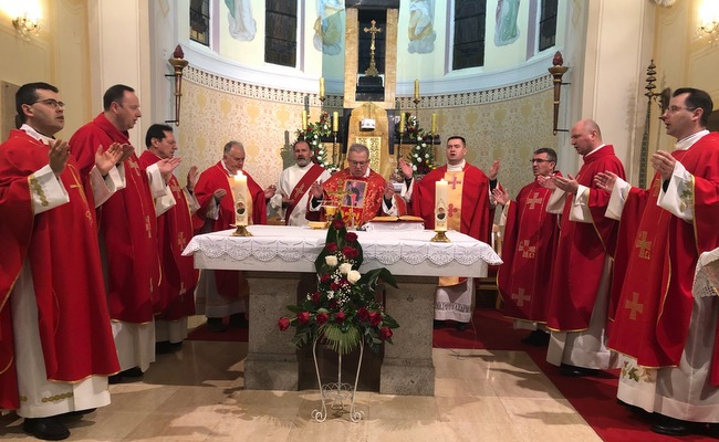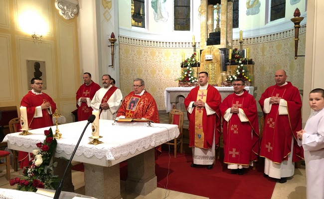Euharistijsko slavlje u 18 sati predvodio je preč. Ivan Topolnjak, dekan Novozagrebačkog dekanata i župnik župe Svetih Anđela, Zagreb–Savski gaj u koncelebraciji sa svećenicima Novozagrebačkog dekanata, vlč. Dragutinom Goričancem, župnikom u župi Završje i voditeljem udruge „JOB“ te vlč. Ivanom Torbarom, župnikom župe svetih Triju Kraljeva u Donjoj Lomnici. Liturgijsko slavlje je svojim pjevanjem uveličao mješoviti zbor župe Tijela Kristova iz Sopota.