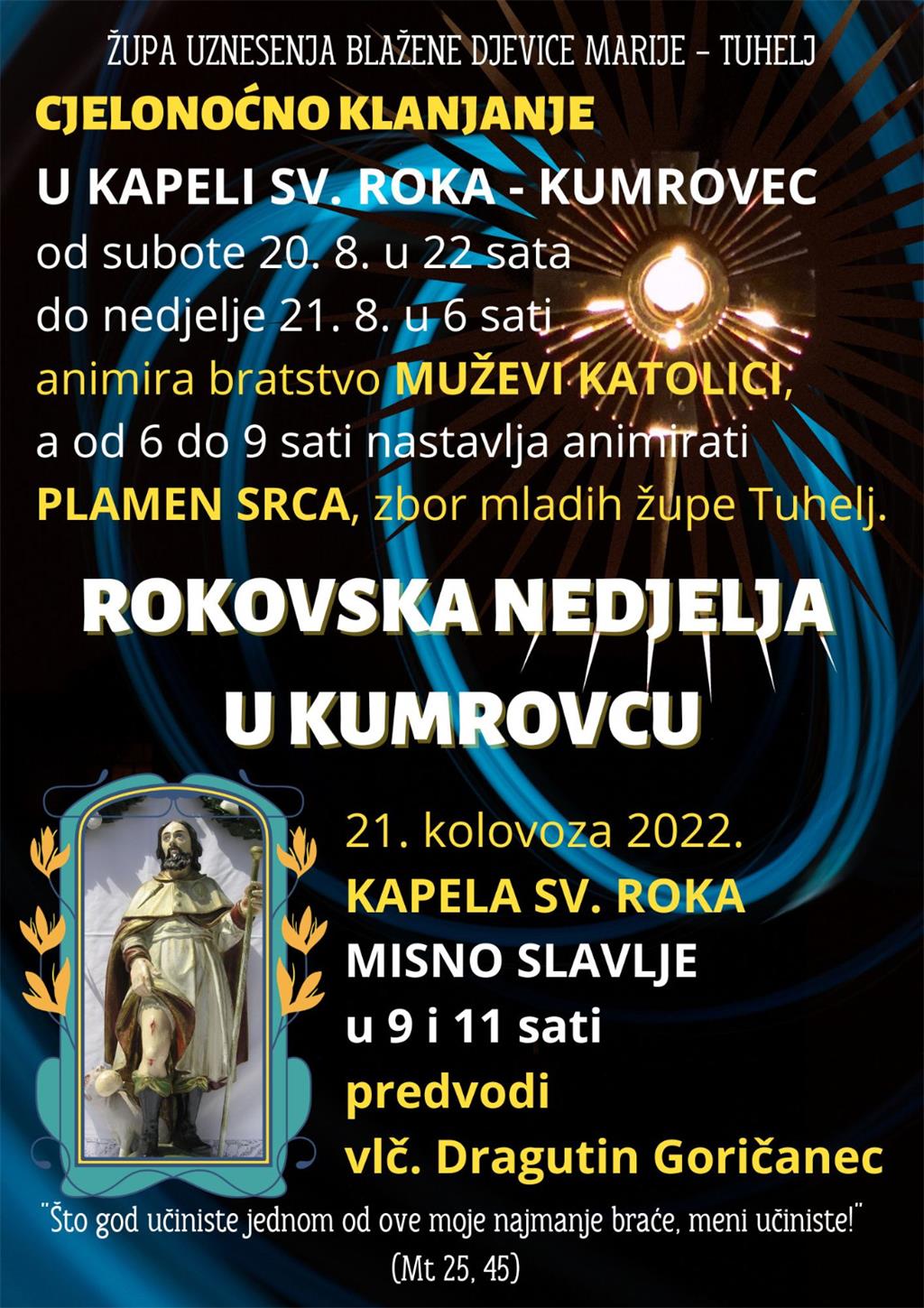 Cjelonoćno klanjanje uoči Rokovske nedjelje u kapeli sv. Roka u Kumrovcu