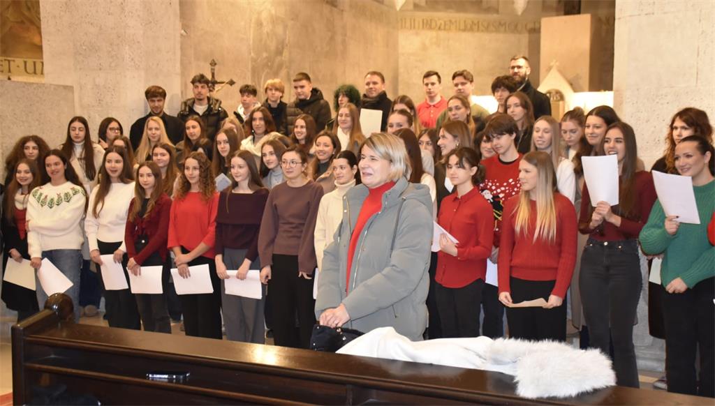 Učenici Gornjogradske gimnazije i Gimnazije Tituša Brezovačkog napunili su crkvu sv. Marka 22. prosinca 2025. svojim prisustvom, pjesmom i molitvom.