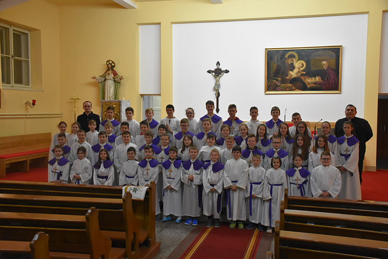 Vrhunac susreta bila je sv. Misa koju su, s početkom u 18.30 sati, slavili u sjemenišnoj kripti sv. Antuna Padovanskog. Impozantno je bilo vidjeti mnoge dječake i djevojčice kako u svojim ministrantskim haljinama prate bogoslužje, a njihovi predstavnici-svaki iz po jedne župe-poslužuju kod oltara. Predvoditelj ovoga slavlja bio je vlč. Matija Pavlaković u koncelebraciji s p. Davorom Lukačevićem, a liturgijsko pjevanje predvodili su animatori uz pratnju sjemeništaraca Petra Vukovića i Lovre Sušca.