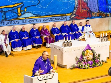 "Došli smo kao hodočasnici nade u ovo Nacionalno svetište sv. Josipa u jubilejsko mjesto oprosta da ohrabreni i okrepljeni hrabro koračamo kroz ovo vrijeme. Da se poput Josipa ne bojimo izazova, da poput njega prihvatimo svoje mjesto i svoje poslanje u Božjem planu spasenja čovjeka i svijeta. Budimo hrabri poput Kraljice s Juga i otvoreni poput Ninivljana", kazao je vlč. Zaplatić te zaključio „Nema sveca bez povijesti, niti grešnika bez budućnosti".