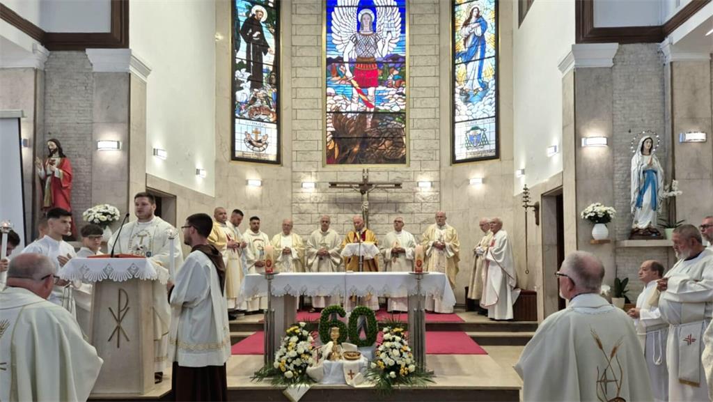 Uz suslavlje provincijala Hrvatske kapucinske provincije sv. Leopolda Bogdana Mandića fra Ante Barišića, župnika iz slavljenikove rodne župe u Donjoj Voći Pavla Mesarića, kapucina iz Hrvatske i Slovenije, te drugih svećenika i u nazočnosti redovnika i redovnica, rodbine, prijatelja i župljana, misu je predvodio sam slavljenik, a propovijedao je fra Jure Šarčević. Evanđelje je pročitao ovogodišnji kapucinski mladomisnik fra Mislav Šebečić.