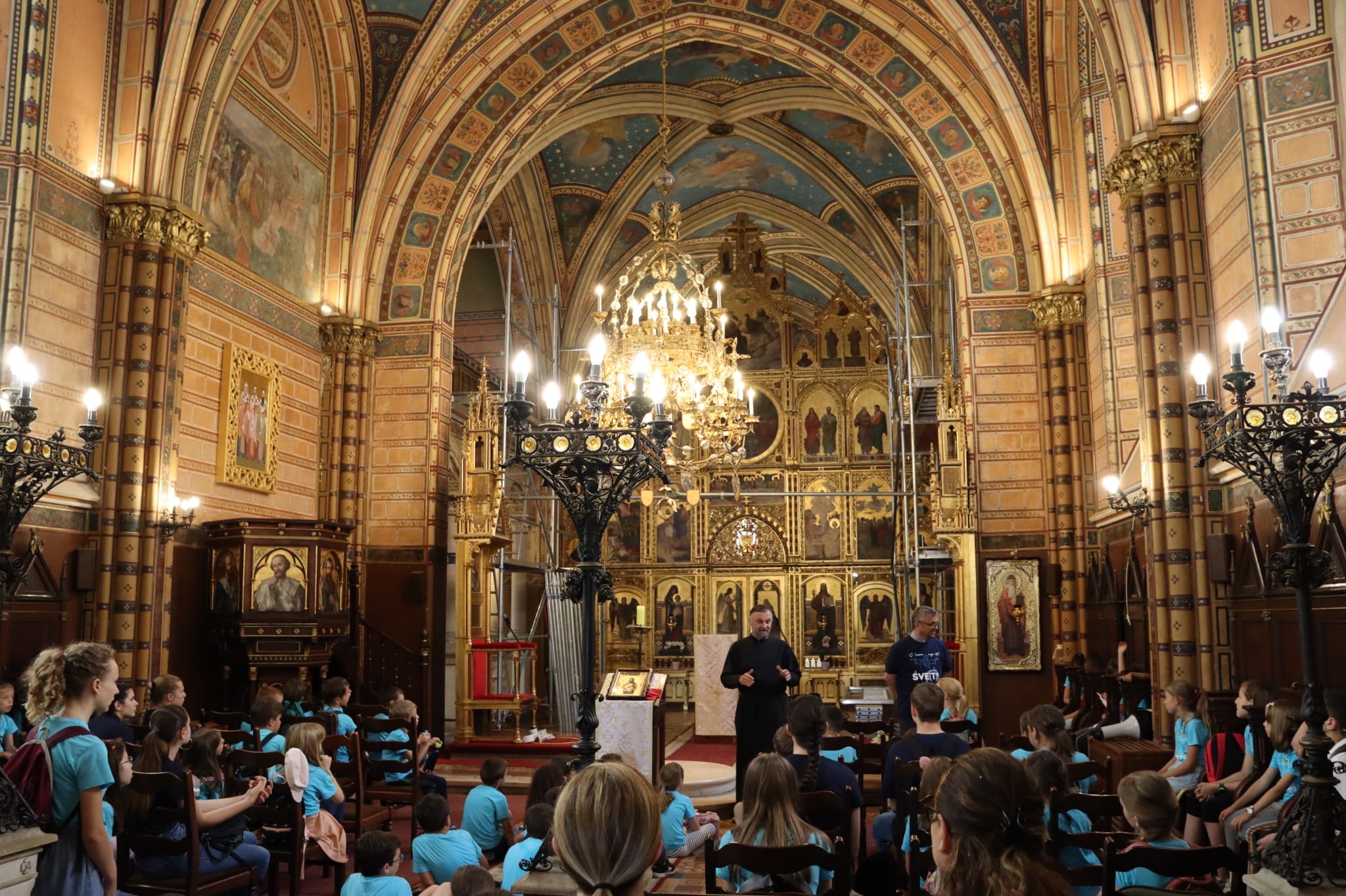 Potom je uslijedio posjet grkokatoličkoj katedrali Presvete Trojice. Ondje je pozdravni govor održao vladika mons. Milan Stipić, a Bratomir Kojadinović opisao je svu ljepotu grkokatoličanstva te razlike u odnosu na rimokatoličanstvo. Strpljivo odgovarajući na pitanja, pojasnio je detalje liturgije i obreda, pokazao dijelove unutrašnjosti katedrale te otvorio stražnji oltar. Boravak u Križevcima završio je zajedničkim ručkom i natjecateljskim igrama.