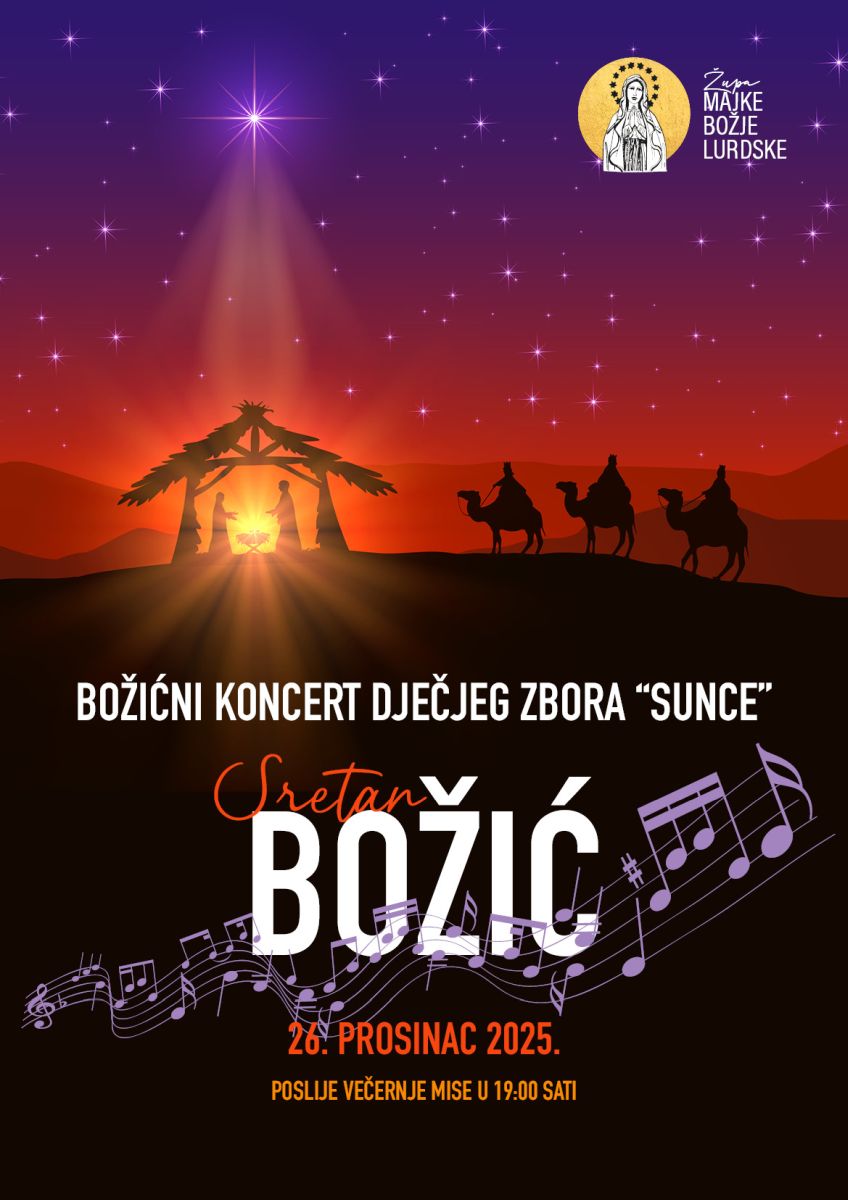 U Župi Majke Božje Lurdske u Zagrebu održat će se božićni koncert dječjeg zbora "Sunce" 26. prosinca nakon večernje mise.