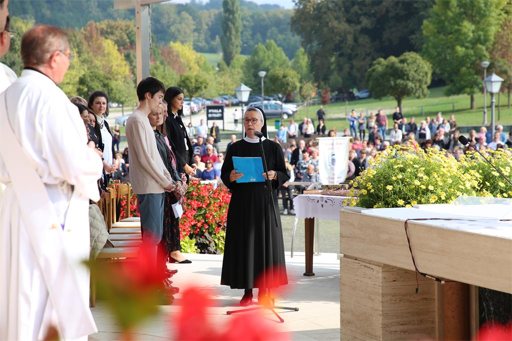 Na početku euharistijskog slavlja s. Valentina Mandarić pozdravila je biskupa Šaška, biskupskog vikara za pastoral preč. Marka Kovača, rektora Svetišta preč. Domagoja Matoševića i sve prisutne svećenike u ime vjeroučitelja, vjeroučiteljica i odgojiteljica u vjeri. Istaknula je kako su, nakon sv. Josipa u Karlovcu i bl. Alojzija Stepinca u Krašić, vjeroučitelji došli Majci Božjoj Bistričkoj, a Majci se dolazi po zagovor, potporu, utjehu, savjet. "Stoga smo ovu školsku godinu željeli staviti pod Marijino okrilje; ne samo sebe, nego svoje najbliže, svoju djecu, učenike, kolege i kolegice, svoju obitelj, našu Domovinu. Želimo se u euharistiji osobito sjetiti svih vjeroučitelja/ica i odgojiteljica u vjeri koji su trenutno bolesni, u izolaciji, koji su uz postelju svoje oboljele djece, koji tuguju zbog smrti najbližih", naglasila je s. Valentina Mandarić. Istaknula je kako je ovo hodočašće posebno i za 38 primatelja trajnog kanonskog mandata koji su stekli za to tražene uvjete.