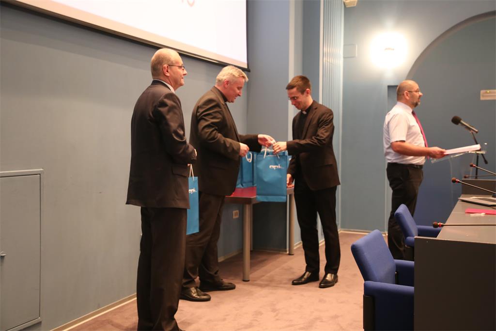 U drugom dijelu svečanosti uslijedilo je uručenje diploma i nagrada đakonima koje su zajedno uručivali ravnatelj Instituta i rektor Bogosovije. Uime đakona prisutne je pozdravio i zahvalio na zajedništvu i spoznajama koje su kroz svoju formaciju primili, vlč. Igor Borić, đakon Sisačke biskupije./NPI