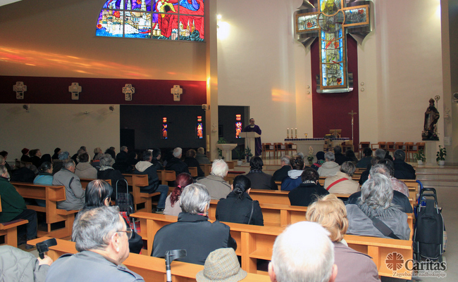 Susret je održan 19. prosinca u župi Sv. Nikole biskupa u zagrebačkom naselju Stenjevec u suradnji sa župnikom vlč. Mariom Bičakom. Vlečasni Bičak bio je Caritasovim korisnicima najprije na raspolaganju za svetu ispovijed, a zatim je predvodio misno slavlje i propovijedao te, onima koji su to trebali, podijelio sakrament bolesničkog pomazanja.