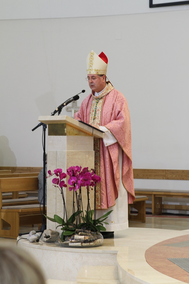 Uvodeći u homiliju mons. Šaško svratio je pozornost okupljenih na boju liturgijskoga ruha – ružičastu – povezujući boju misnice sa običajem koji seže u 11. stoljeće, a po kojem bi papa na četvrtu korizmenu nedjelju blagoslivljao ružu kako bi se povezalo kršćansko otajstvo i blizina početka proljeća kao znak novog rasta, buđenja i cvjetanja. "A današnje slavlje višestruko i snažno odražava istinu životnosti, spasenja i pobjede nad tamom. Tu je izvorište novoga života, rasta i cvata. Ali, i mi, u ovoj crkvi tvorimo Božji cvijet, štoviše: ružičnjak Božjega Duha", zaključio je biskup.
