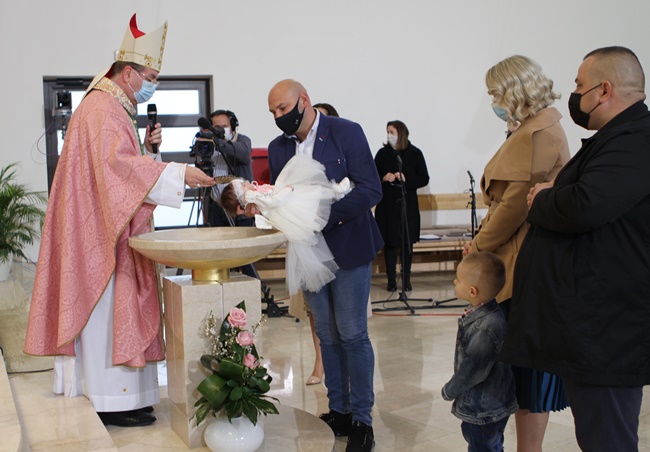 Pozdravljajući sve prisutne biskup je podsjetio vjernike na značenje četvrte korizmene nedjelje koja se u liturgiji crkve naziva i Laetare! Veseli se!, naglašavajući pritom kako upravo "pred malenim djetetom, pred otajstvom ljudskog života, od svih osjećaja najprimjerenija je radost u zahvlanosti." Pozivajući vjernike na sabranost i pokajanje biskup je naglasio kako je razlog naše vjerničke radosti činjenica da smo spašeni zahvaljujući Kristovoj ljubavi, ne po sebi i svojim zaslugama, već Božjim darom.