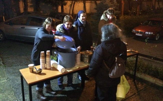 Nakon svete mise uslijedilo je zajedničko druženje svih volontera i korisnika uz topli čaj i kuhano vino, a volonteri su za tu prigodu ispekli kolače koje su kasnije podijelili korisnicima uz redoviti topli obrok.