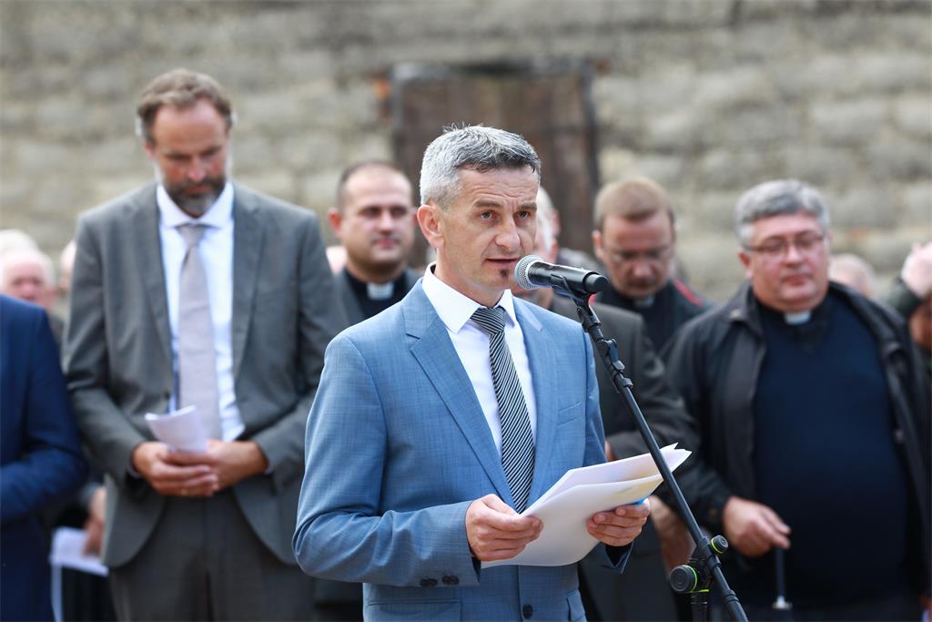 Svečanoj proslavi prisustvovali su, kao izaslanik predsjednika Sabora Gordana Jandrokovića, karlovački župan Damir Jelić, ministar regionalnih razvoja i fondova Europske unije Marko Pavić, ministar hrvatskih branitelja Republike Hrvatske Tomo Medved, župan Zagrebačke županije Stjepan Kožić te gradonačelnici i načelnici susjednih gradova i općina. Prije samog svečanoga otkrivanja i blagoslova spomen obilježja, pobožnost Krunice Blažene Djevice Marije od 10 sati u župnoj su crkvi predmolili bogoslovi čiji je zbor pjevao liturgiju Srednjeg časa pod ravnanjem maestra Miroslava Martinjaka.