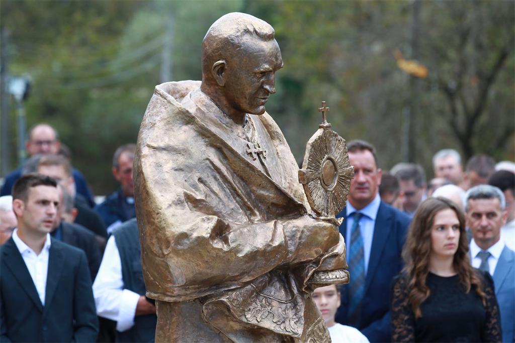 U nastavku homilije Kardinal se je osvrnuo na prikaz kardinala Kuharića u umjetničkome kipu koji nam „pokazuje da je zemaljski život našega subrata Franje bio neodvojiv od Boga koji nam se darovao u Euharistiji, ali jednako tako da ni naš život nije razumljiv bez Boga i bez ljubavi koja se žrtvuje za drugoga. (…) Siguran sam da će ovaj kip biti poticaj na dobro i na uzajamnu ljubav, da bi Bog bio po nama vidljiv u svijetu. Ta ljubav poziva nas na obraćenje i ispravlja loše navike i ponašanja. Štoviše, poziva nas na Gozbu ljubavi u zajedništvo Euharistije, da bismo i mi mogli u svijet donijeti uskrsloga Krista i po Njemu blagoslov na sva mjesta u kojima živimo i djelujemo i tako biti svjedoci vječnosti u prolaznosti ovoga svijeta“, rekao je kardinal Bozanić.