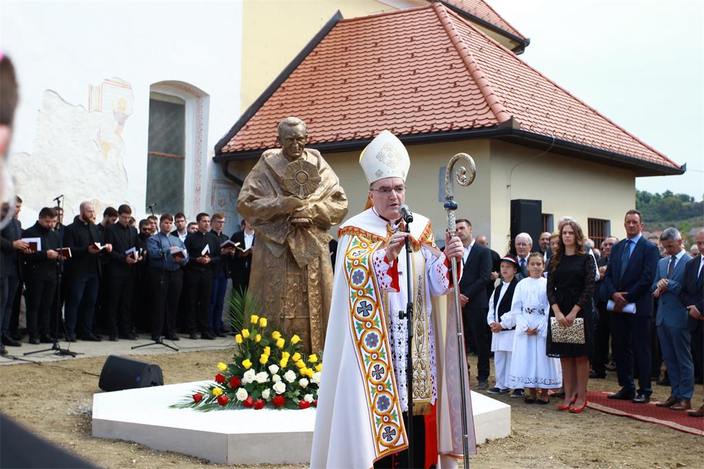 "Odlučili smo podići kip koji neće biti samo spomenik jednomu znamenitom čovjeku Crkve iz ovoga kraja, nego postaviti likovni znamen koji govori porukom Evanđelja, koji poziva i privlači, koji upućuje na Isusa Krista. Naime, time je bio prožet sav život na zemlji, svećeništvo i biskupska služba kardinala Franje. I sada je njegov lik pred nama. Kardinal Franjo Kuharić nikada se nije odvojio od svoga rodnog kraja, ali se ipak danas tako vidljivo u njega vratio", na početku je homilije istaknuo kardinal Bozanić, govoreći o povezanosti kardinala Kuharića i njegove rodne župe čitavoga njegova života.