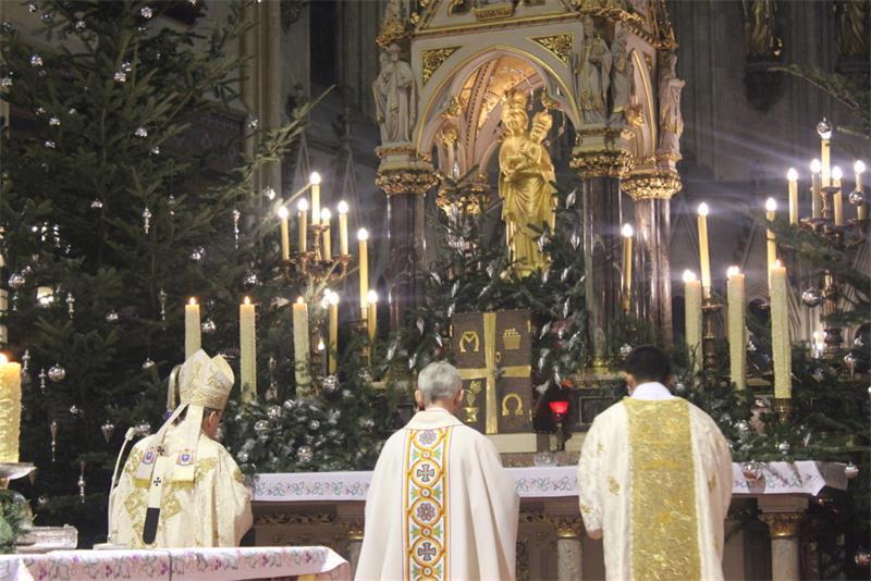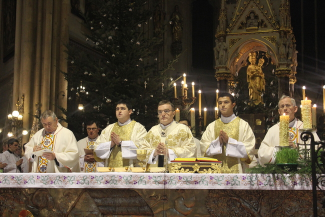 Zagrebački nadbiskup kardinal Josip Bozanić predslavio je u zajedništvu sa svećenicima i okupljenim vjernicima svečano euharistijsko slavlje u zagrebačkoj prvostolnici na Svetkovinu Svete Marije Bogorodice na Novu godinu, 1. siječnja 2015. godine.