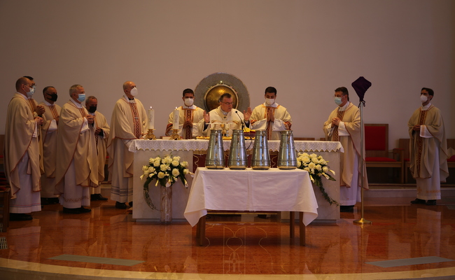 Zagrebački nadbiskup kardinal Josip Bozanić predvodio je na Veliki četvrtak, 1. travnja, Misu posvete ulja u Župi sv. pape Ivana XXIII. u zagrebačkoj Dubravi.