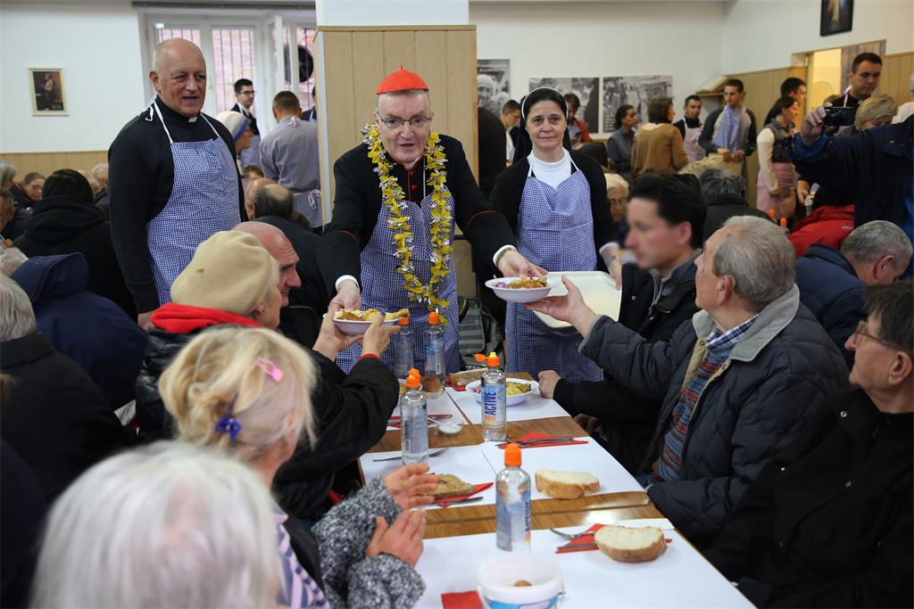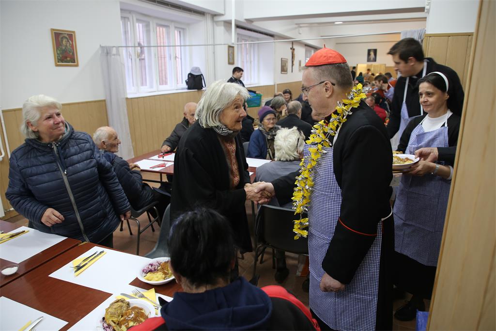 Nakon svete mise kardinal Bozanić, zajedno sa sestrama i volonterima, podijelio je ručak korisnicima pučke kuhinje, a potom i prigodne darove.