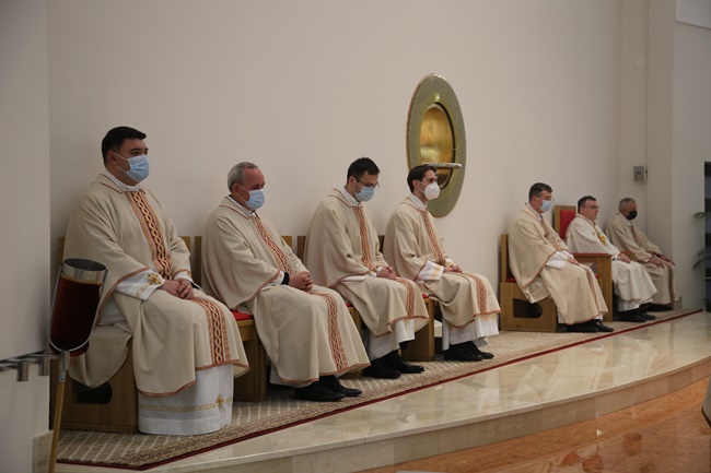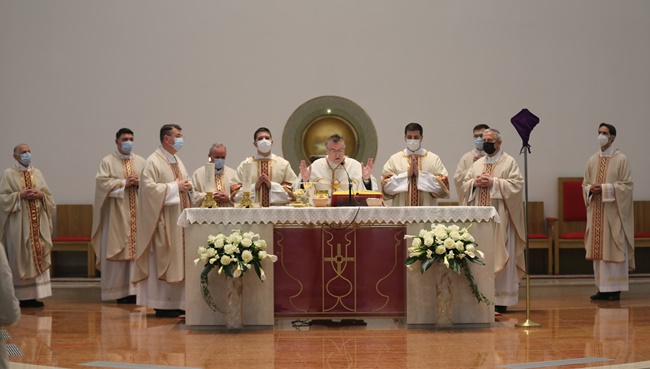 Propovijedao je pomoćni biskup mons. Ivan Šaško. U uvodu je biskup istaknuo kako smo ušli u trodnevno slavlje otajstava koje očituje sadržaj naše vjere i kršćanski način življenja. Napomenuo je dubinu značenje Velikoga četvrtka navodeći "da bismo bez toga dana ostali uskraćeni za značenje i za smisao najvećih dragocjenosti kao što su Euharistija, svećeništvo, bratsko-sestrinska ljubav i služenje; onoga, naime, što nas odeđuje, što nas čini Crkvom, što daje da budemo obitelj kao dionici Kristova tijela."