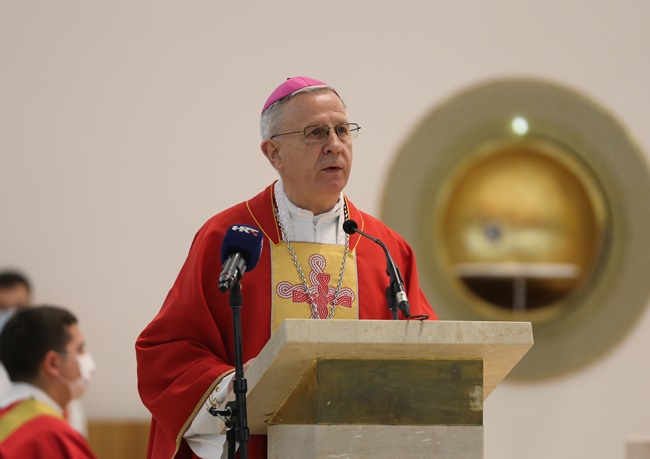 "Ako u tim trenucima izgubimo pouzdanje u Božju dobrotu i ljubav, u Boga koji s nama prolazi kroz sve mučne životne zbilje, veoma lako, zbog slabosti svoje naravi, spremni smo sve izokrenuti. I jesmo. Poljubac kojeg smatramo znakom ljubavi u Getsemanskom vrtu postao je znakom izdaje. Čini nam se neshvatljivo da muka Isusova i naše muke započinju slavljem, a izdaja poljupcem", istaknuo je biskup homiliji.