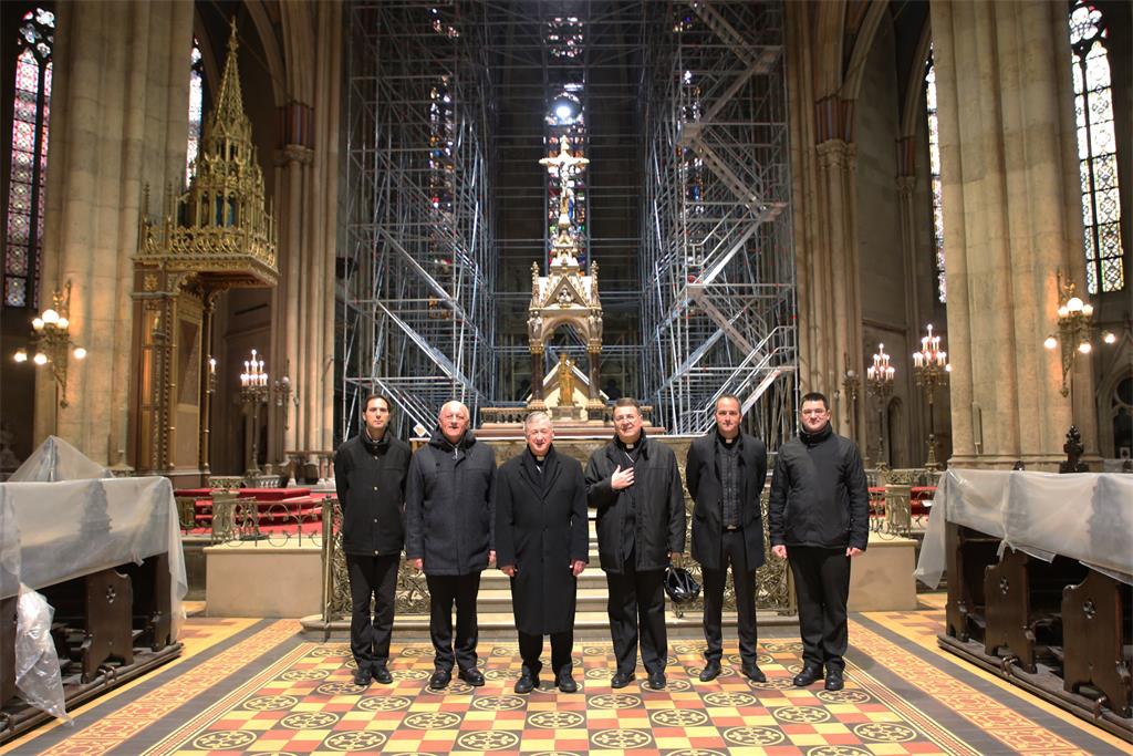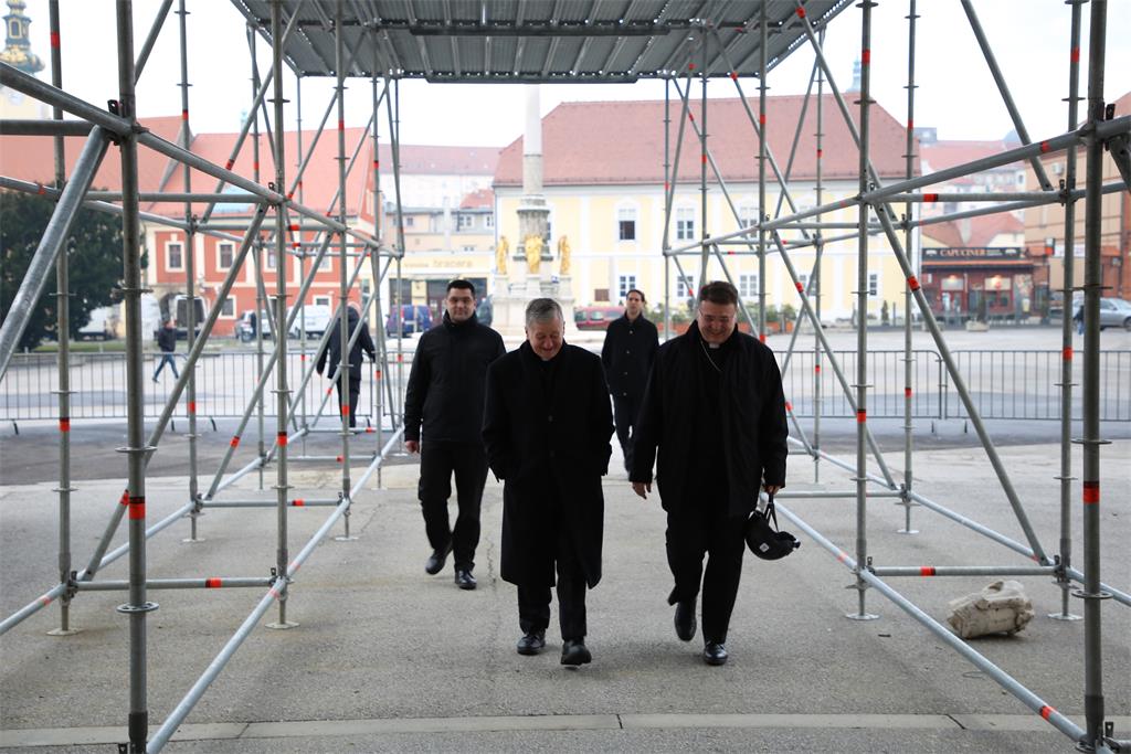 Pred katedralom ga je dočekao pomoćni zagrebački biskup i predsjednik Odbora za obnovu katedrale mons. Ivan Šaško, u pratnji potpredsjednika Odbora mons. Zlatka Korena i upravitelja Nadbiskupskog dvora preč. Ivice Budinšćaka. Pohodu su prisustvovali i biskupski vikar i kancelar Nadbiskupskog duhovnog stola preč. Marko Kovač te pročelnik Tiskovnog ureda i vicepostulator za kauze beatifikacije i kanonizacije Zagrebačke nadbiskupije preč. Tomislav Hačko.