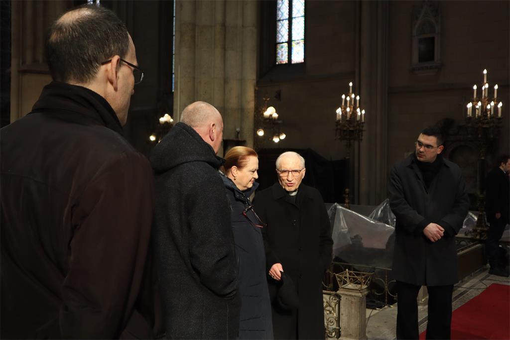 Mons. Koren upoznao je kardinala s poviješću katedrale, s osobitim osvrtom na oštećenja koja su nastala u potresima 2020. te procesom obnove. Naglasio je kako je katedrala nakon drugog potresa potpuno zatvorena, a skele trenutno učvršćuju njen svod.