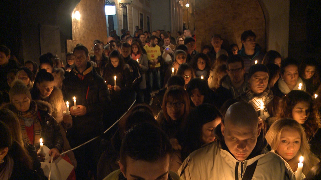 Prva molitvena aktivnost bila je pobožnost krunice, koju molitvena zajednica »Srce Isusovo« već uobičajeno moli svakog utorka u zaklonu drevnih vrata na Gornjem gradu, pred likom Majke Božje od Kamenitih vrata, a 16. prosinca otajstva života Blažene Djevice Marije i zrnca krunice mladi su prebirali s posebnim mislima na sadašnje potrebe naše domovine. Poruke zajedništva, domoljublja, solidarnosti, promicanja narodnosti – izmjenjivale su se na usnama mladih koji su na Kamenita vrata došli kako bi se pridružili nadbiskupijskom molitvenom zajedništvu za domovinu.