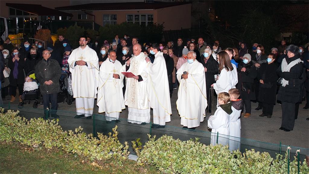 Odmah po završetku svih radova, na molbu župnika Matića, radi blagoslova Gospinog kipa rado se odazvao mons. Zlatko Koren. On je prvo uz asistenciju župnika Mate Matića, supsidijara Andrije Vrane, župnog vikara Luke Tufekovića i župnika susjedne Župe Blaženoga Ivana Merza Marka Čolaka predslavio euharistiju povodom blagdana Bezgrješnog začeća Blažene Djevice Marije, a zatim je pred kipom Blažene Marije molio blagoslivljajući njega i prisutne vjernike.