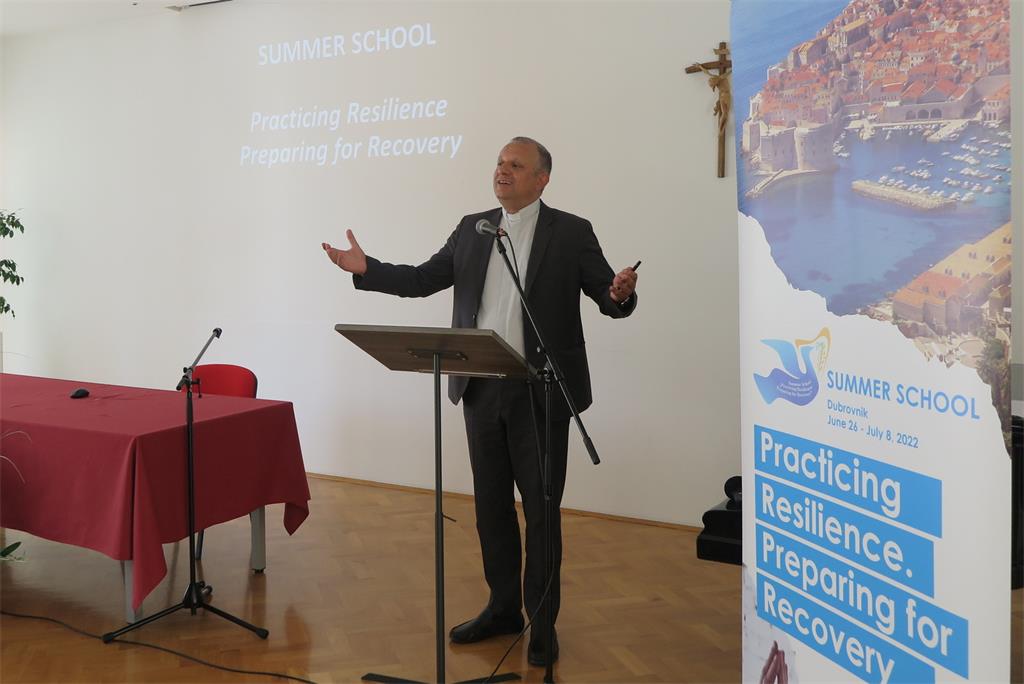 Pozdravljajući okupljene studente, predavače, profesore, organizatore i uzvanike dubrovački biskup mons. Roko Glasnović je podsjetio kako je Isus Krist – Mir naš te poželio da ova ljetna škola „potakne duh zajedništva, solidarnosti, razumijevanja i pomoći svima“. Prisjetio se i ratnih stradanja u Hrvatskoj koja su ostavila traga na mnogima te zaključio svoje obraćenje blaženstvom: Blago mirotvorcima – oni će se sinovima Božjim zvati.
