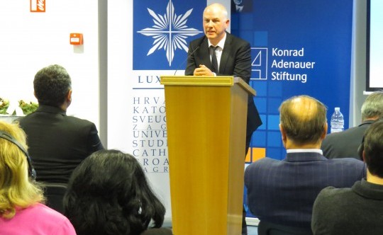 U organizaciji Zaklade Konrad Adenauer i Hrvatskog katoličkog sveučilišta dr. sc. Karsten Dümmel, direktor predstavnišva Zaklade Konrad Adenauer u Bosni i Hercegovini, održao je na našem Sveučilištu u utorak 16. prosinca 2014. godine predavanje 25 godina nakon pada Berlinskog zida – suočavanje s prošlošću.