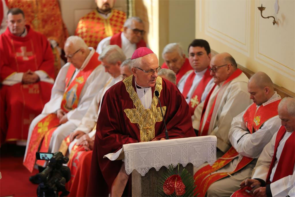 Na početku homilije biskup Sudar ističe da današnja Božja riječ izaziva vjernika da malo dublje promisli o pitanju kušnje koju tumači kroz misna čitanja i nadodaje da su u povijesti kršćanstva bili milijuni onih koji su kroz njih prolazili snagom besmrtne nade, utjehom koja je od Boga i vidjevši, shvativši Isusovu poruku, koja kaže da je kušnja i sama smrt mogu biti proslava, vidjeli svoje proslavljenje. „Jednog od takvih likova mi danas slavimo.“