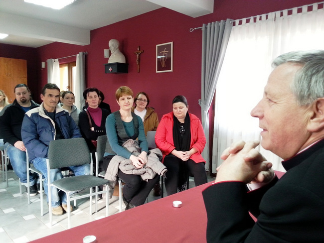 Poslije večernjeg misnog slavlja biskup Gorski susreo se s ovogodišnjim kandidatima za primanje sakramenta krizme. Učenicima osmih razreda biskup Mijo je na jednostavan, pristupačan i prijateljski način progovorio o sakramentu za kojega se pripremaju.