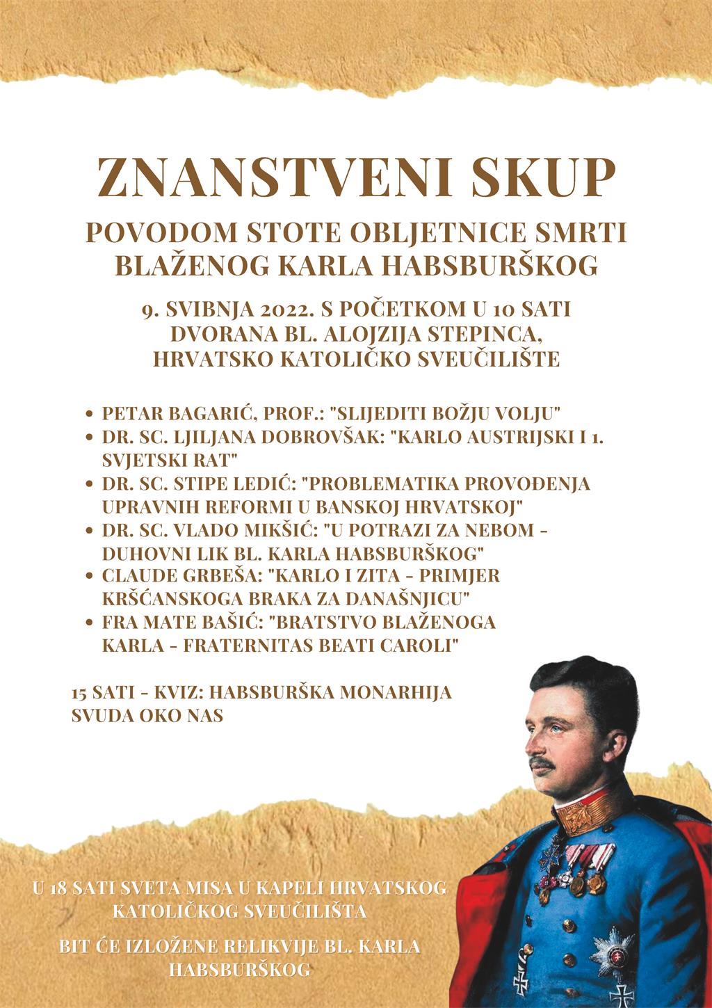 U ponedjeljak 9. svibnja 2022. na Hrvatskom katoličkom sveučilištu održava se znanstveni skup povodom 100. obljetnice smrti blaženog Karla Habsburškog.
