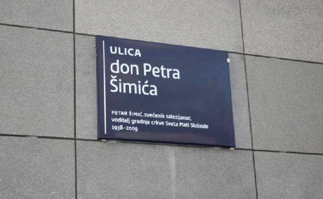 Svečano otkrivanje ploče s imenom Ulice don Petra Šimića obilježeno je u subotu 29. lipnja na južnoj strani Svetišta Sveta Mati Slobode u Zagrebu.