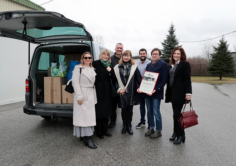 Bogatu i raznovrsnu donaciju (higijenske potrepštine, prehrambene artikle, posteljinu, ručnike, deke, čarape, potkošulje i bojanke) namijenjenu djeci s tjelesnim ili mentalnim oštećenjima u Kući "Bl. Alojzije Stepinac" u Brezovici te majkama s novorođenčadi i malom djecom u Kući ljubavi na Savici-Šancima u Zagrebu preuzele su i na njoj srdačno zahvalile, uime Caritasovih korisnika u dvjema kućama, voditeljica Sektora usluga socijalne skrbi Suzana Horvat Kutle i voditeljica Kuće u Brezovici Dubravka Šumelj.