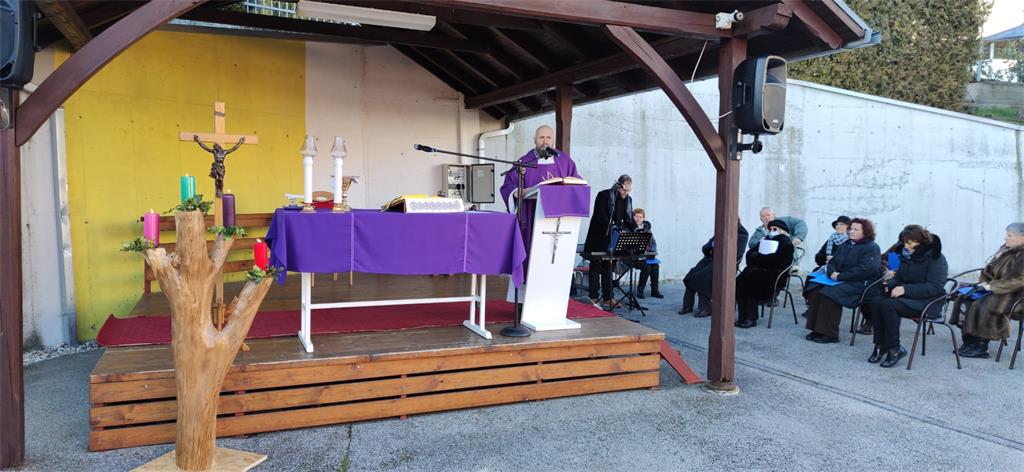 U Župi sv. Petra i Pavla Zagreb - Bešići vjernici se nedjeljom okupljaju na euharistiju na vanjskom liturgijskom prostoru u dvorištu župe. Kako bi se poštivale epidemiološke mjere, misna slavlja na otvorenom slave se od početka pandemije bez obzira na ljetnu vrućinu i hladnoću zimskih uvijeta. Iako u jutarnjim satima temperatura zna biti i ispod 0°C, a vidljivost zbog magle smanjena, okupljenima nije problem prikazati ovu malu žrtvu Bogu na slavu, a ljudima na spasenje. Tako je bilo i na četvrtu nedjelju došašća.