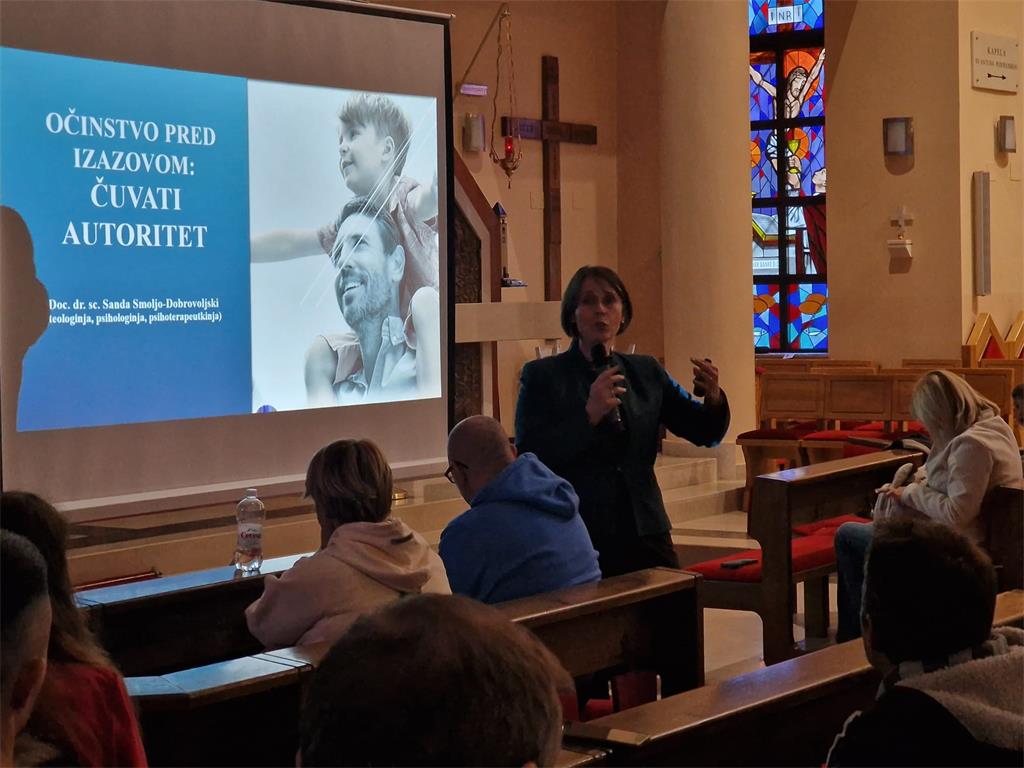 Dr. sc. Sanda Smoljo-Dobrovoljski, profesorica na Katoličkom bogoslovnom fakultetu Sveučilišta u Zagrebu održala je predavanje za roditelje o temi „Očinstvo pred izazovom - čuvati autoritet“ u petak 19. travnja u Župi sv. Antuna Padovanskog u Sesvetskim Selima.