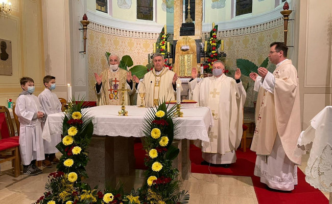 Na kraju mise izmoljena je molitva za proglašenje kardinala Stepinca svetim. Vlč. Vučak obratio se djeci, ispričavši kako je Stepinac djeci dijelio bombone, pa su ga zvala „Isus s bombonima“, te će im nakon mise biskup Mrzljak podijeliti bombone u spomen na to. Najavio je i da će sljedeći dan u župu doći dvojica biskupa – križevački vladika Milan Stipić i umirovljeni vladika Nikola Kekić te će se slaviti božanska liturgija sv. Ivana Zlatoustoga, a nakon mise blagosloviti grla po zagovoru sv. Blaža.