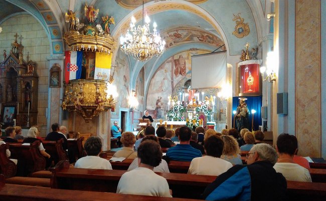 Prvi dio duhovne obnove završio je svetom misom, u kojoj je župnik istaknuo Isusovu čežnju za nama, kako na Posljednjoj večeri i na križu, tako i u svakoj misi danas. Nakon ručka, sudionici su u crkvi izmolili križni put prema tekstovima sv. Brigite, a program je završen Posvetom Krvi Kristovoj. Osnaženi u svojoj vjeri i duhovno obogaćeni, zahvalni Bogu na ovoj sadržajem bogatoj duhovnoj obnovi, župljani su se moleći i pjevajući vratili iz lijepe barokno oplemenjene crkve u Ludbregu na svoju Trnjansku Savicu – još uvijek bez crkve.