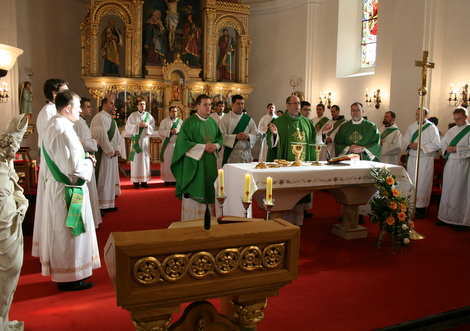 Po dolasku u župu Lepoglava dočekao ih je domaći župnik vlč Andrija Kišićek. U 11 sati u župnoj crkvi Bezgrešnog začeća Blažene Djevice Marije sv. misu je predvodio dr. Tomislav Markić u zajedništvu s vlč. Kišićekom i 18 đakona iz Zagrebačke i Zadarske nadbiskupije, Varaždinske i Sisačke biskupije te članova redovničkih zajednica. Propovijedao je Janko Lulić, đakon iz Odre Sisačke u Sisačkoj biskupiji, a o svojem svećeničkom i redovničkom pozivu na kraju mise posvjedočili su Tomislav Planinić, đakon Zadarske nadbiskupije te fra Željko Cestar, đakon Hrvatske kapucinske provincije sv. Leopolda Bogdana Mandića. Druženje se nastavilo na ručku u obližnjem restoranu Ivančica i u župnom dvoru.