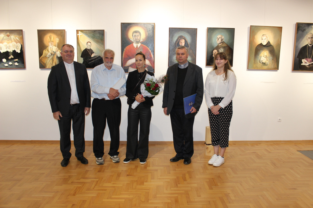 Zahvalivši organizatorima izložbe autorica je kratko ispričala kako je otkrivajući i slikajući hrvatske svece i sama rasla u duhovnosti te je naglasila da je za nju vrhunac sakralnog stvaranja onda kada se ostvari duhovan prostor između osobe koja promatra sliku i onoga što je prikazano na slici, nadajući se da će upravo to postići prezentirane slike hrvatskih svetaca.