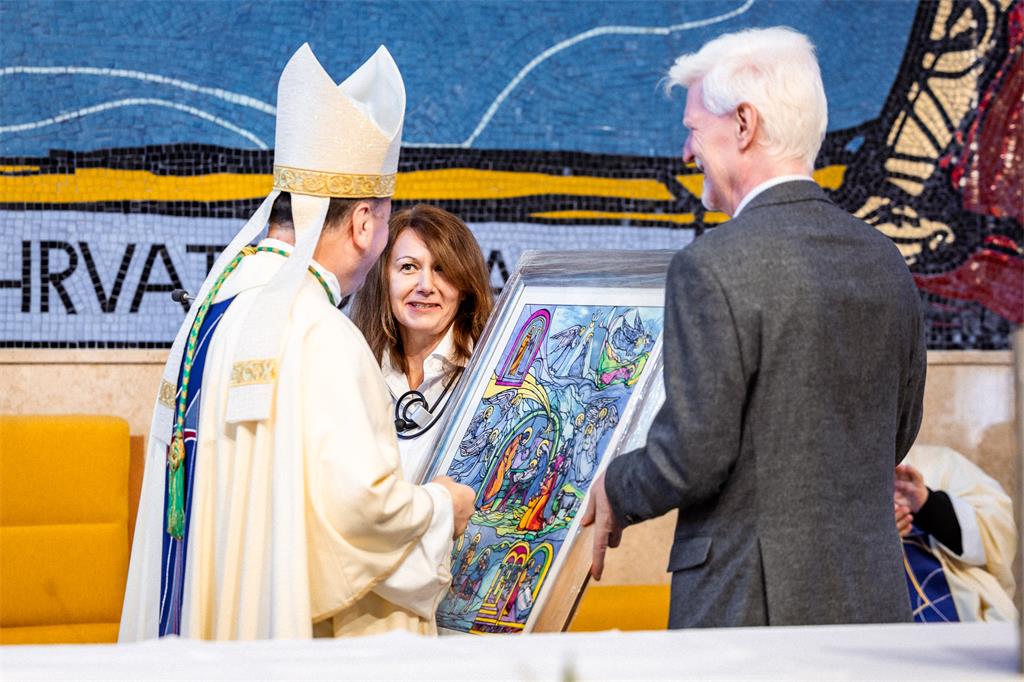 Na kraju misnog slavlja mons. Paliću, uime svih prisutnih bračni par Željko i Elvira Žalac, voditelji Josipova vjenčića u Zurichu u Švicarskoj, uručili su kao dar zahvale grafiku Josipa Botterija Dinija koja prikazuje život svetog Josipa.