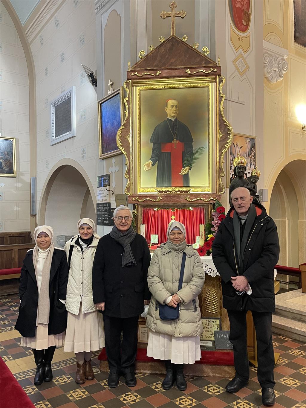 Nunciji i redovnice dugo su se zadržali u molitvi pred moćima bl. Alojzija Stepinca u crkvi, a nakon molitve obišli su i pomolili se u obnovljenom Spomen-domu bl. Alojzija Stepinca.