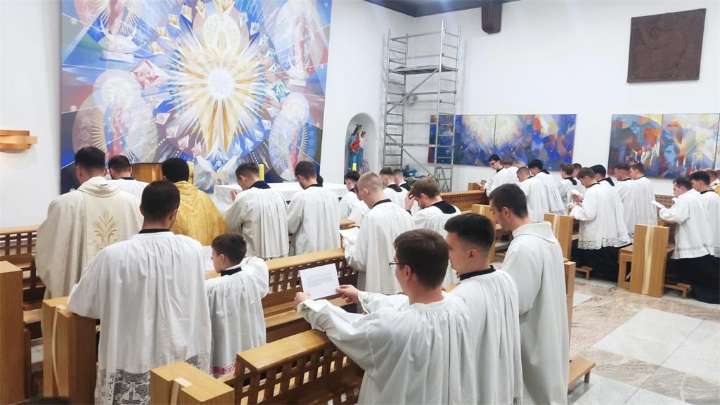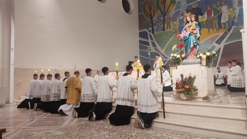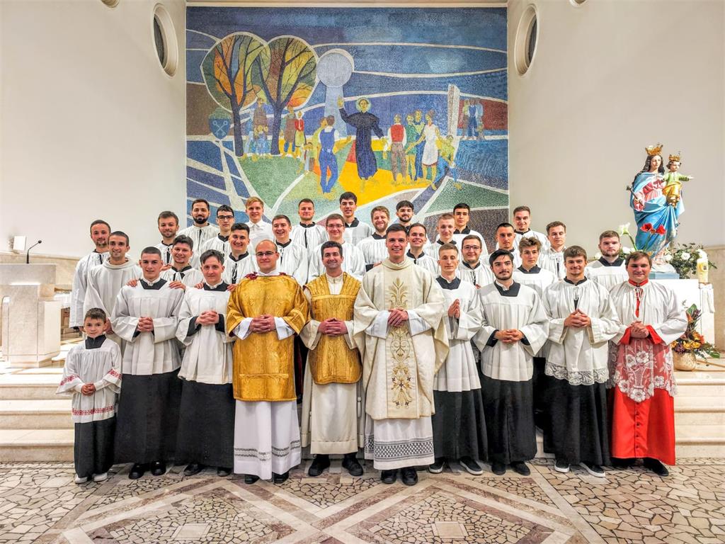 Nakon susreta, na svečanoj večernjoj svetoj misi u zbor ministranata primljena su četvorica novih odraslih članova: Matijas Bebek, Mislav Brnadić, Jakov Palić i Dino Gačić. Naime, zbor ministranata u župi podijeljen je na tri skupine: dječju (do 8. razreda), srednjoškolsku i odraslu, koje se međusobno povezuju i nadopunjuju, a cjelovitost ministrantskog služenja je u odrasloj skupini. Sam čin primanja održava se nakon šestomjesečne priprave u kojoj kandidati, uz vodstvo župnog ceremonijara i voditelja ministranata, prolaze teorijsku i praktičnu pripravu te se upoznaju sa svim službama ministriranja, liturgijskim ruhom i posuđem, organizacijom sakristije i godišnjeg liturgijskog pastorala, liturgijskim knjigama i pripremom misnih slavlja uz tumačenje liturgijskog i teološkog značenja i svakodnevnu molitvu časoslova.